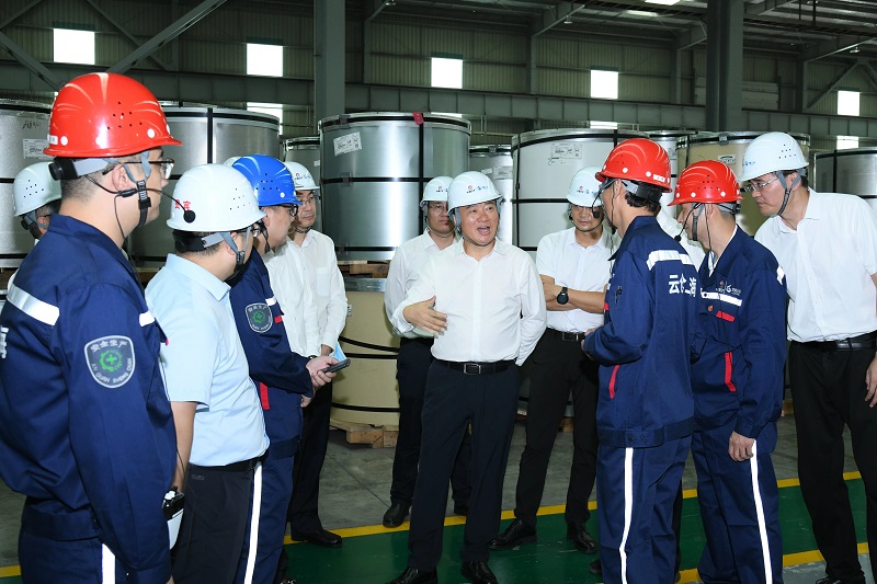 翁祖亮觀看數字化大屏了解企業生產經營情況 翁祖亮調研企業園區冷軋加工區并與一線干部職工交流 翁祖亮調研企業園區酸洗加工區